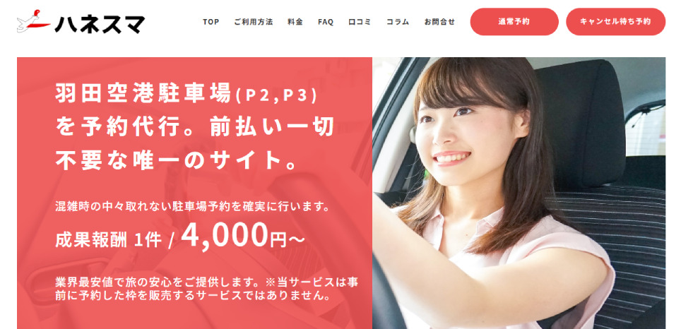 「ハネスマ」は、羽田空港の駐車場をあなたの代わりに予約してくれるサービスである。