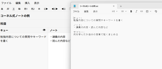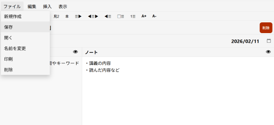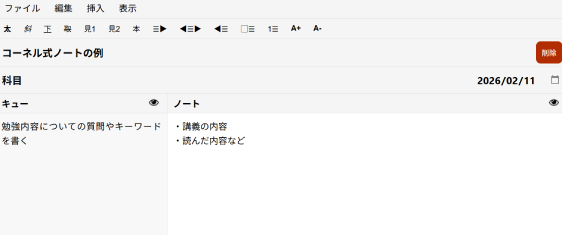 コーネル式ノートをブラウザ上ですぐに取れるのが特徴だ。
