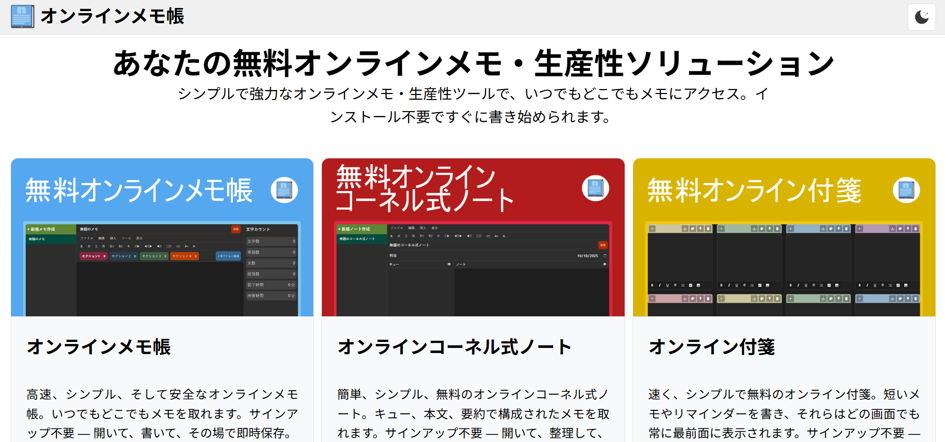 Web開発の勉強で作るようなメモアプリそのままだが、超使いやすい。考えてみると、メモするだけなのに会員登録したり毎回ログインしたりって面倒だったなあと気がついた。Online Notepadはすぐにメモしてローカルに保存する「一回使い捨て」仕様で使い勝手が良い。