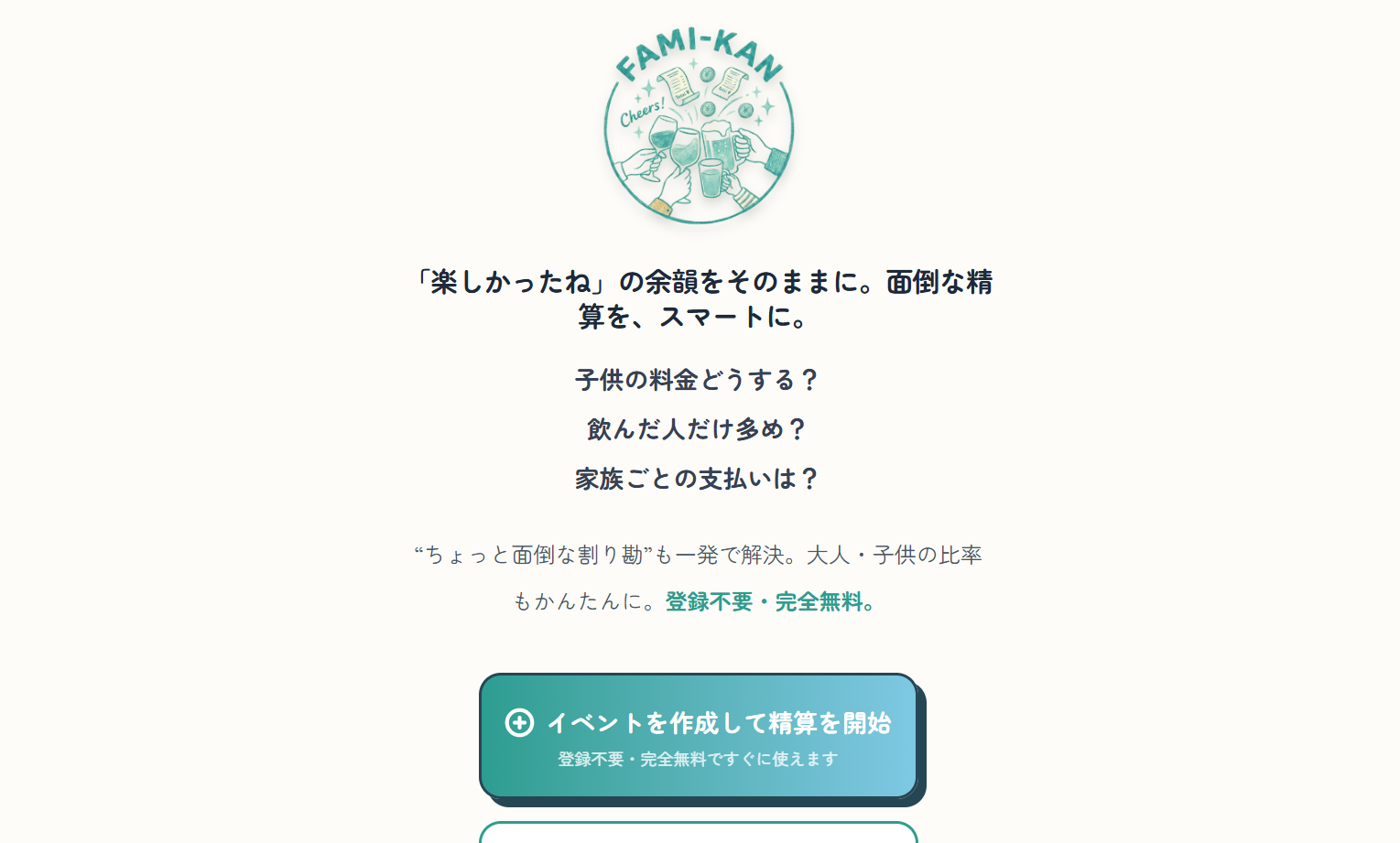 FAMI-KANの良さは、機能の多さよりも設計思想の素直さにある。割り勘サービスは世の中にいくつもあるが、FAMI-KANは「誰でもすぐ使えること」と「家族・グループ特有の面倒さを処理すること」にかなり振り切っている。特に、大人と子供の比率計算と共通財布管理を、登録不要のブラウザ体験に載せている点はユニークだ。